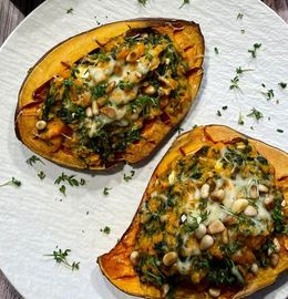 Gefüllte Süßkartoffeln mit Spinat und Feta